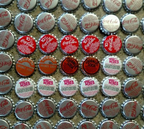 Title (ebay affiliate link): 114 Vintage Unused Soda Pop Bottle Caps lot: Tab, Coca-Cola, Orange, Arkansas