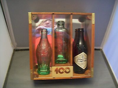 Coca Cola 100th Centennial Celebration Wooden Case W/Three Bottles
