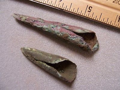Title (ebay affiliate link): TWO AUTHENTIC OLD COPPER CULTURE CONICAL POINTS FROM THE JIM BUSSEY COLLECTION