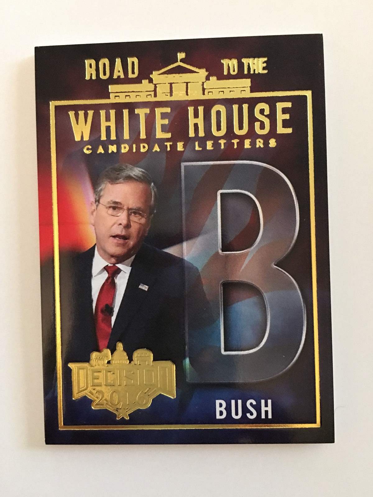 Title (ebay affiliate link): 2016 DECISION WHITE HOUSE CANIDATE LETTERS CARD B JEB BUSH RWH7