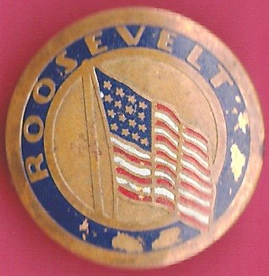Title (ebay affiliate link): ROOSEVELT AMERICAN FLAG Teddy or FDR Political Campaign BRASS Pin Pinback Badge