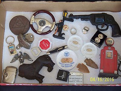 Vintage Junk Drawer Lot- Knife Cuff links Coca Cola Lighters Arrow Heads Toy Gun