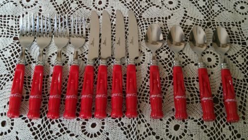 Title (ebay affiliate link): 12 piece + COKE - COCA-COLA flatware silverware set stainless steel
