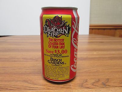 Title (ebay affiliate link): 1992 Coca-Cola Drachen Fire Busch Gardens ad soda can. Hard to Find.