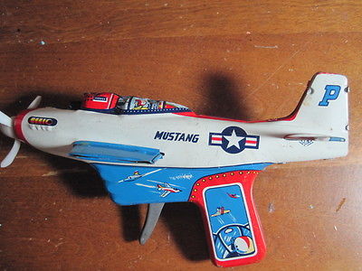 Title (ebay affiliate link): Vintage Tin Airplane (Mustang) Gun White w/Red & Blue Needs works