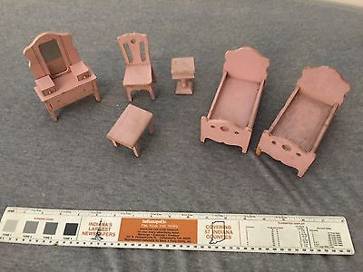 Antique Vintage Wood Doll House Furniture and Accessories - Bedroom Set