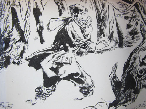 Vintage ORIG Henry C Pitz LITTLE WOLF SLAYER Book Ink Illustration Cooke #3 yqz