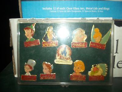 VINTAGE WALT DISNEY WORLD 15 YEARS COCA COLA PETER PAN HOOK WENDY 9 PIN SET NIP