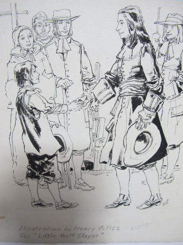 Vintage ORIG Henry C Pitz LITTLE WOLF SLAYER Book Ink Illustration Cooke #7 yqz