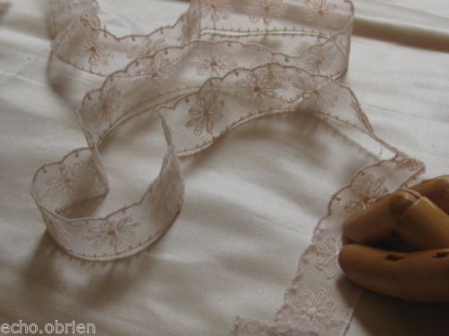 Title (ebay affiliate link): ANTIQUE BLUSH Pink Cotton TULLE TRIM EMBROIDERED Scallop/Flowers 1.5Y x1" DOLLS