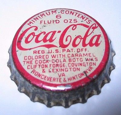 Title (ebay affiliate link): COCA-COLA BOTTLE CAP CLIFTON FORGE, COVINGTON, & LEXINGTON VA + W.VA.; USED CORK