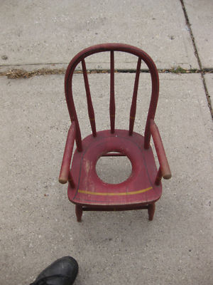 RARE ANTIQUE RED WOOD CHILD'S POTTY CHAIR