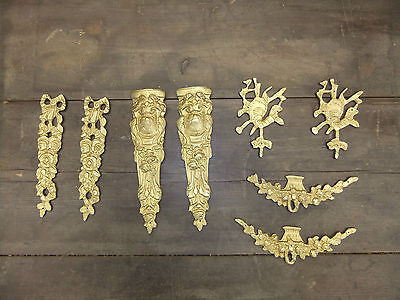 Set of 8 Solid Brass French Style 'Antique' Cast Furniture Decorations / Mounts