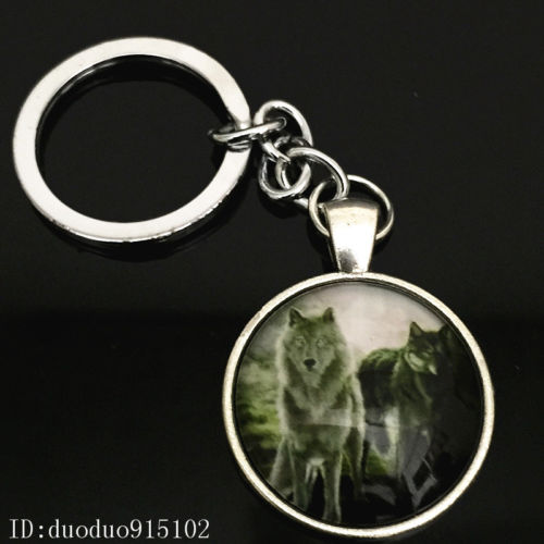 Title (ebay affiliate link): Vintage wolf Keychain Cabochon Tibetan silver Glass Metal Key Ring Y39