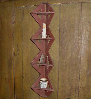 antique vintage tramp art style corner shelf old paint