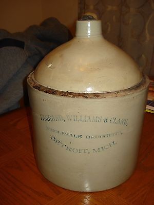 VINTAGE 2 GAL.CROCK DRUGGIST JUG F.W CLARK DETROIT MICH 1890S