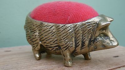 SUPERB ANTIQUE BRASS PIG PIN CUSHION
