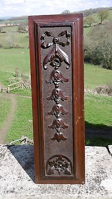 SUPERB 19thc ART NOUVEAU OAK PANEL WITH BOW & STYLISED FLORAL CARVINGS (1)