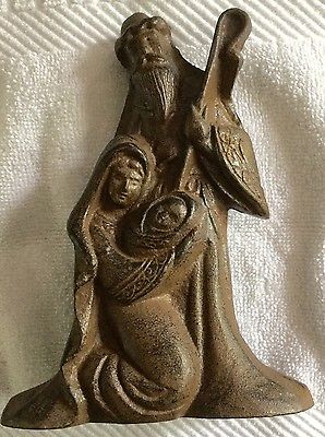 Title (ebay affiliate link): Antique Metal Cast Iron Statue Mary, Joseph, Baby Jesus Nativity Paperweight