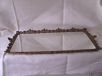 Title (ebay affiliate link): Antique Rare Gem Large Glass Brass and Mirrored Dresser Serving Tray 25" x 14"