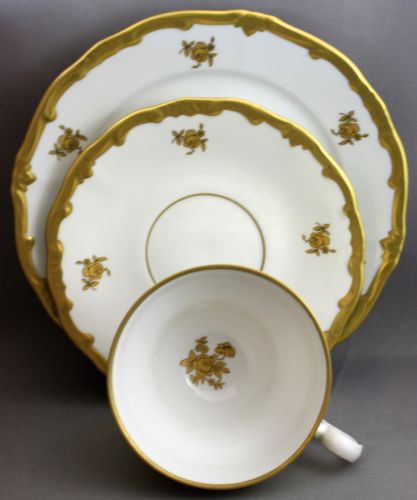 WEIMAR BAVARIA GERMANY TRIO TEACUP & SAUCER/PLATE-KATHARINA/GOLD J42