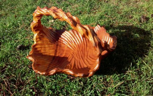 Burl Wood Bowl with Handle Large Handcarved Fruit Bowl NICE!