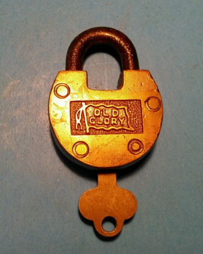 Antique Vintage Old Glory Padlock Brass Lock Circa 1900 With Key