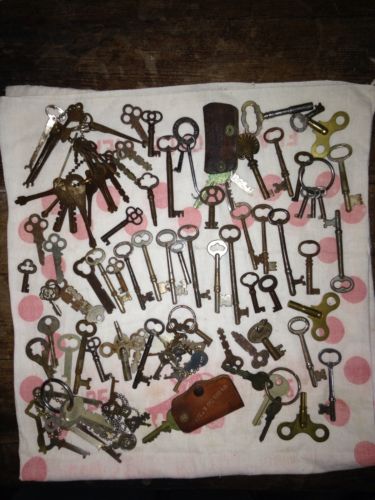 BIG LOT VINTAGE SKELETON KEYS CLOCK BARREL CABINET STEAMPUNK PADLOCK 25C