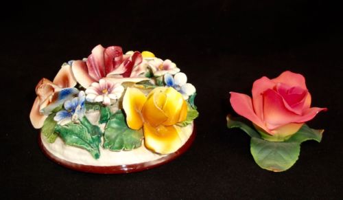Large Porcelain 3D Sculpted Flowers Figurine & Single Coral Bisque Rose Figurine