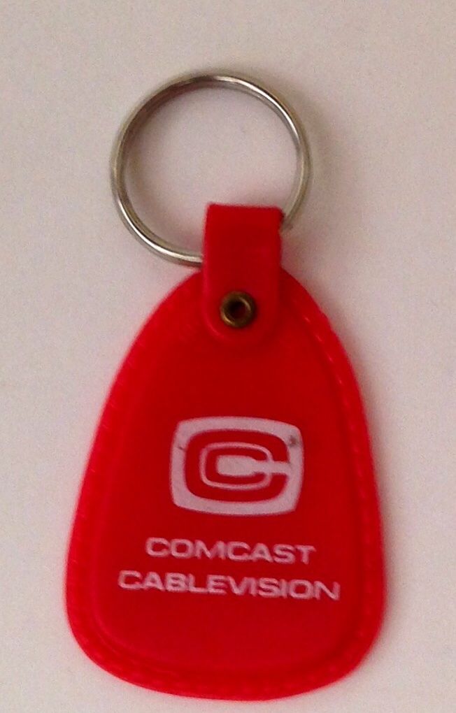 Title (ebay affiliate link): Vintage Comcast Cable TV Plastic Keychain Key Ring "It's Better Than Television"