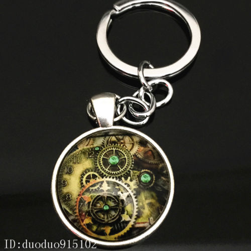 Title (ebay affiliate link): Vintage compass Keychain Cabochon Tibetan silver Glass Metal Key Ring Y35