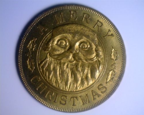 Title (ebay affiliate link): Vintage Gilt Brass Santa Claus Happy New Year Coin
