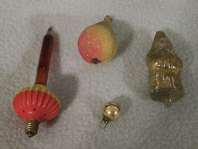 4 VTG ANTIQUE VICTORIAN CHRISTMAS TREE ORNAMENT HAND BLOWN PEAR SANTA BUBBLE LIT
