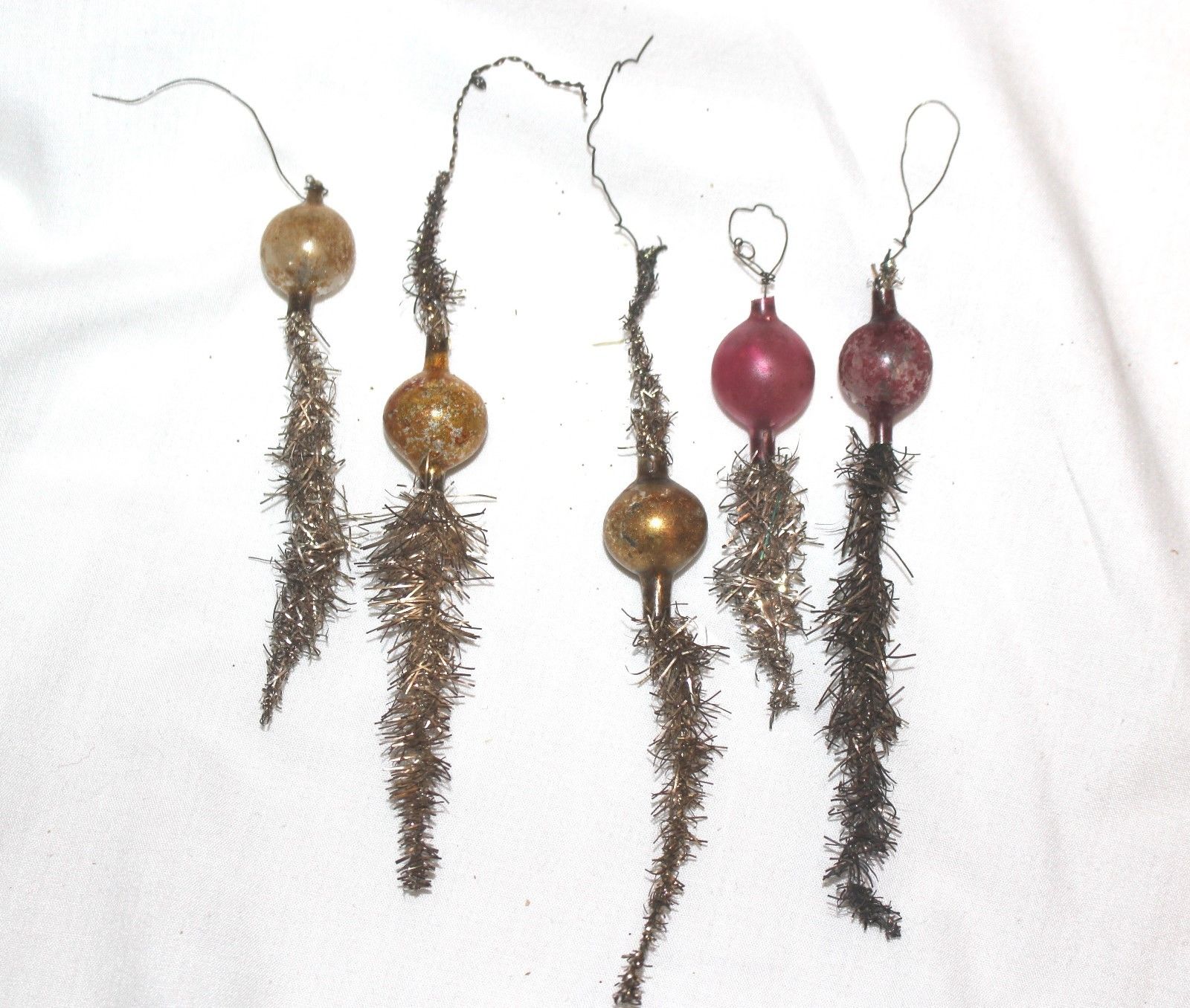 Title (ebay affiliate link): Five late 1890s Glass Sphere and Tinsel Tail German Xmas Tree Ornaments.