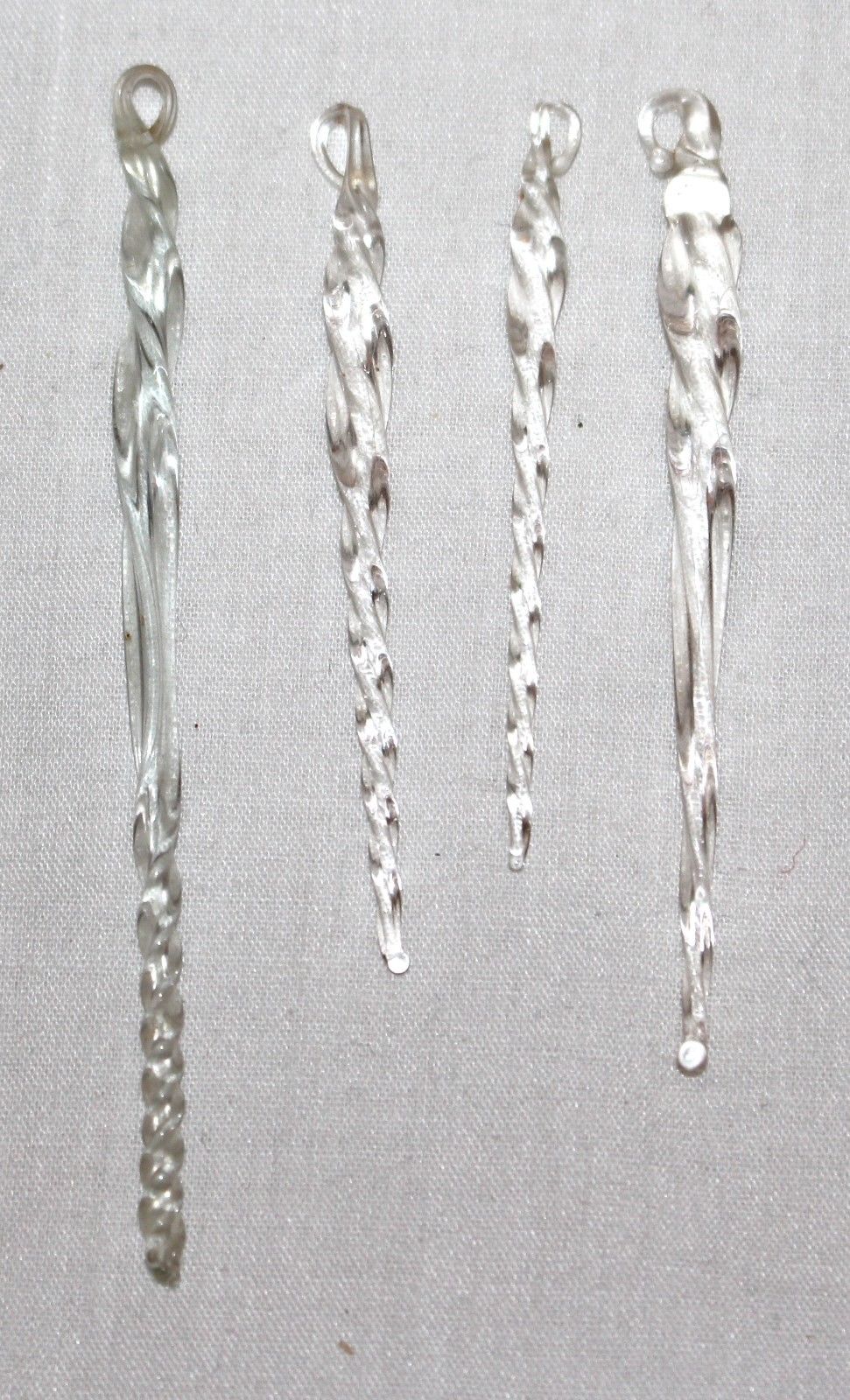Title (ebay affiliate link): First set of Four Clear Glass, Hand-blown & Shaped German Icicles. For Tree.