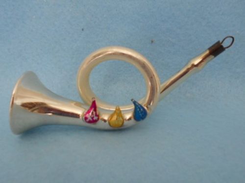 Title (ebay affiliate link): VINTAGE MERCURY GLASS FRENCH HORN W RARE ANNEALED VALVES MUSICAL ORNAMENT