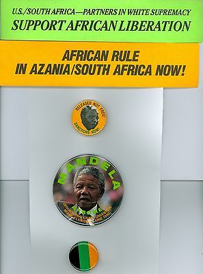 3 Vintage 1980s-90 Nelson Mandela Political Pinback Buttons & Africa stickers