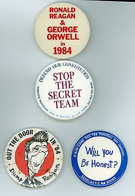 Title (ebay affiliate link): 4 Vintage 1980s President Ronald Reagan Political Campaign Pinback Buttons