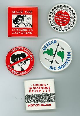 5 Vintage 1992 Native American Rights Cause Pinback Buttons Defend Big Mountain