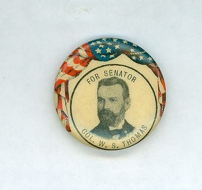 Vintage 1900s Senator Col. W S Thomas Political Campaign Pinback Button