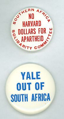 2 Vintage 1980s Harvard Yale Africa Peace University Divest Pinback Buttons