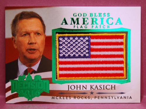 Title (ebay affiliate link): Decision 2016 John Kasich God Bless America GREEN FOIL Flag Patch Insert #GBA10