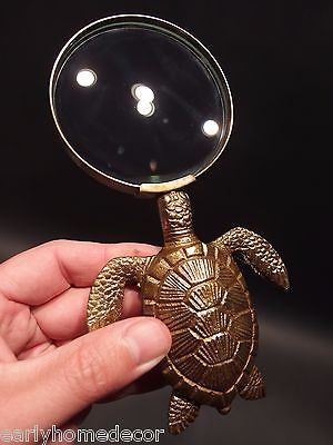 Vintage Antique Style Brass Sea Turtle Magnifying Glass Desk Hand Lens