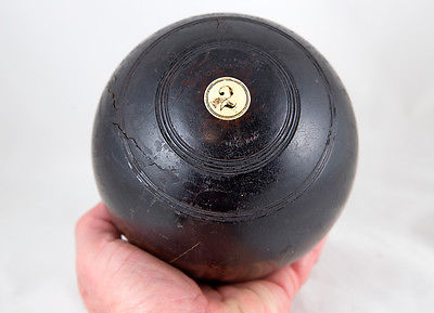 Late 1800s Lignum Vitae WOOD LAWN BOWLING BALL early marks with insert