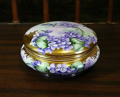 Title (ebay affiliate link): Antique Hand Painted Porcelain Dresser Box Bavaria Limoges Gold Violet Signed