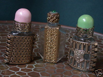 Title (ebay affiliate link): 3 ANTIQUE VICTORIAN DECO GOLD T GLASS PERFUME BOTTLE LOT FRENCH ? CZECH ? COMBIN