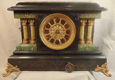 Antique SETH THOMAS Wooden Mantel Clock w/ Lion Handles & Pendulum