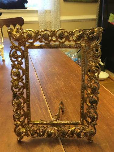 Antique Vintage Ornate Brass Metal Free Standing Picture Frame