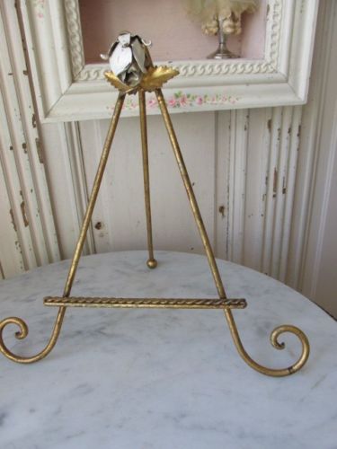 Title (ebay affiliate link): GORGEOUS Old Vintage ITALIAN TOLE EASEL with Single WHITE ROSE at Top