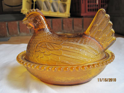 Vintage Amber Covered Hen /Chicken on Nest Dish